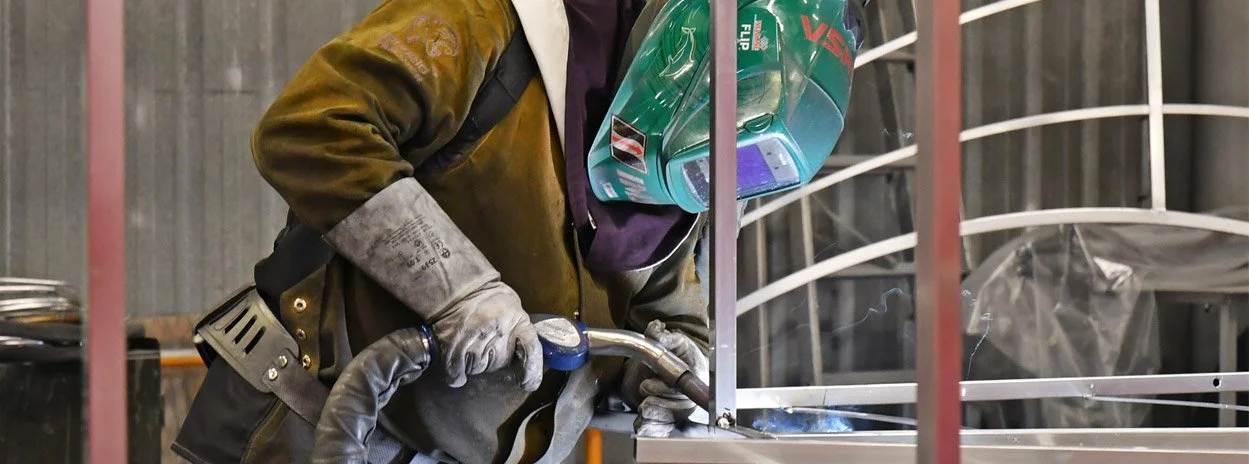 Ci-dessus, l’un de nos soudeurs spécialisés en aluminium intervient directement sur la structure du décor afin d’en modifier la forme.